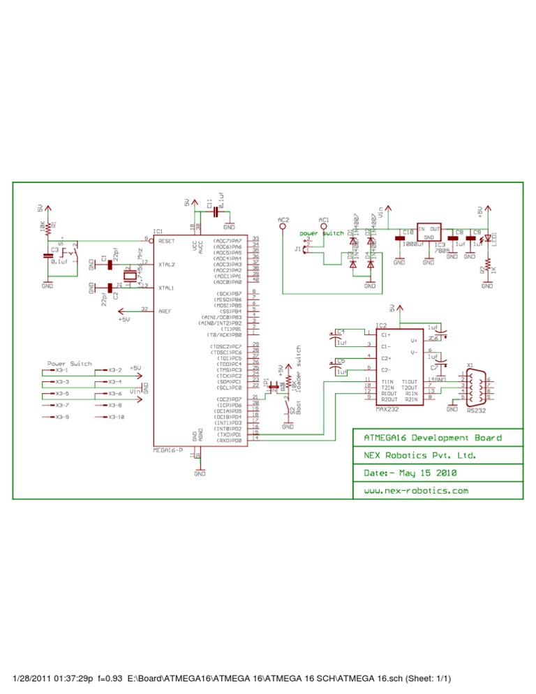 Atmega16 development board schematic.